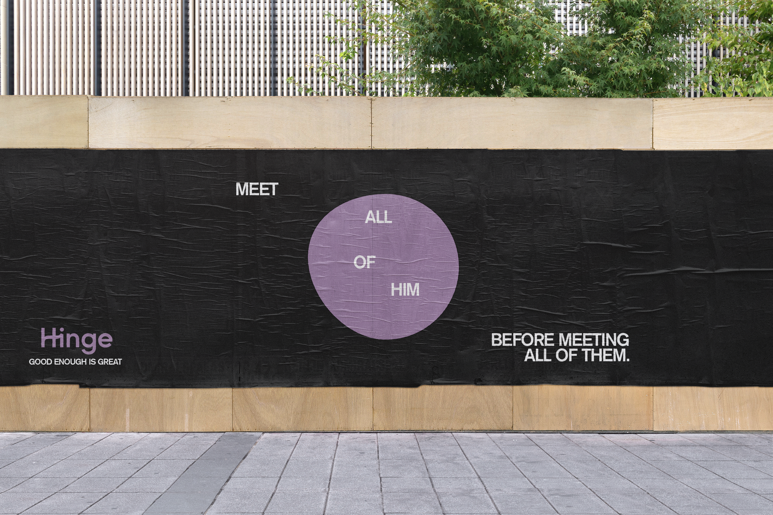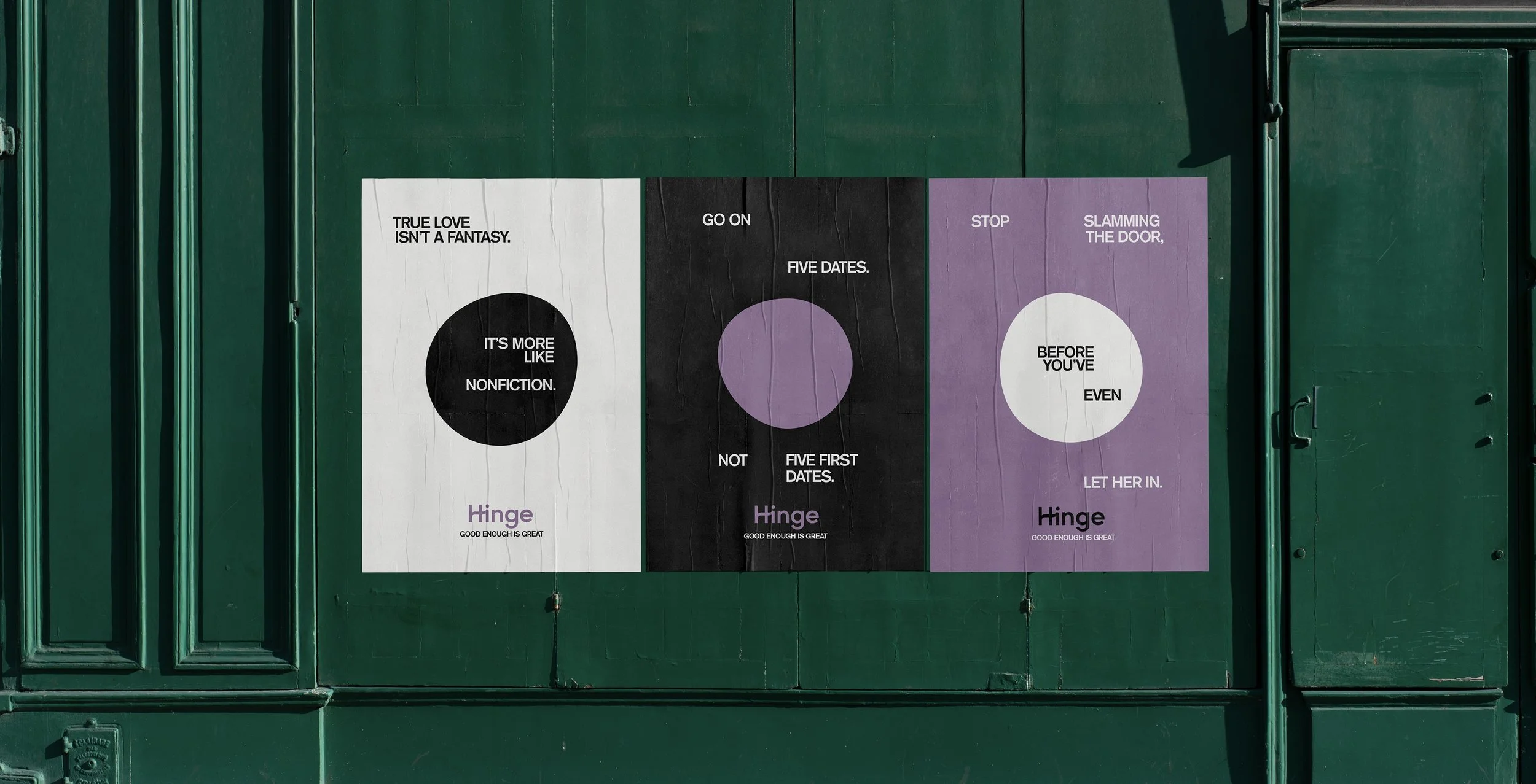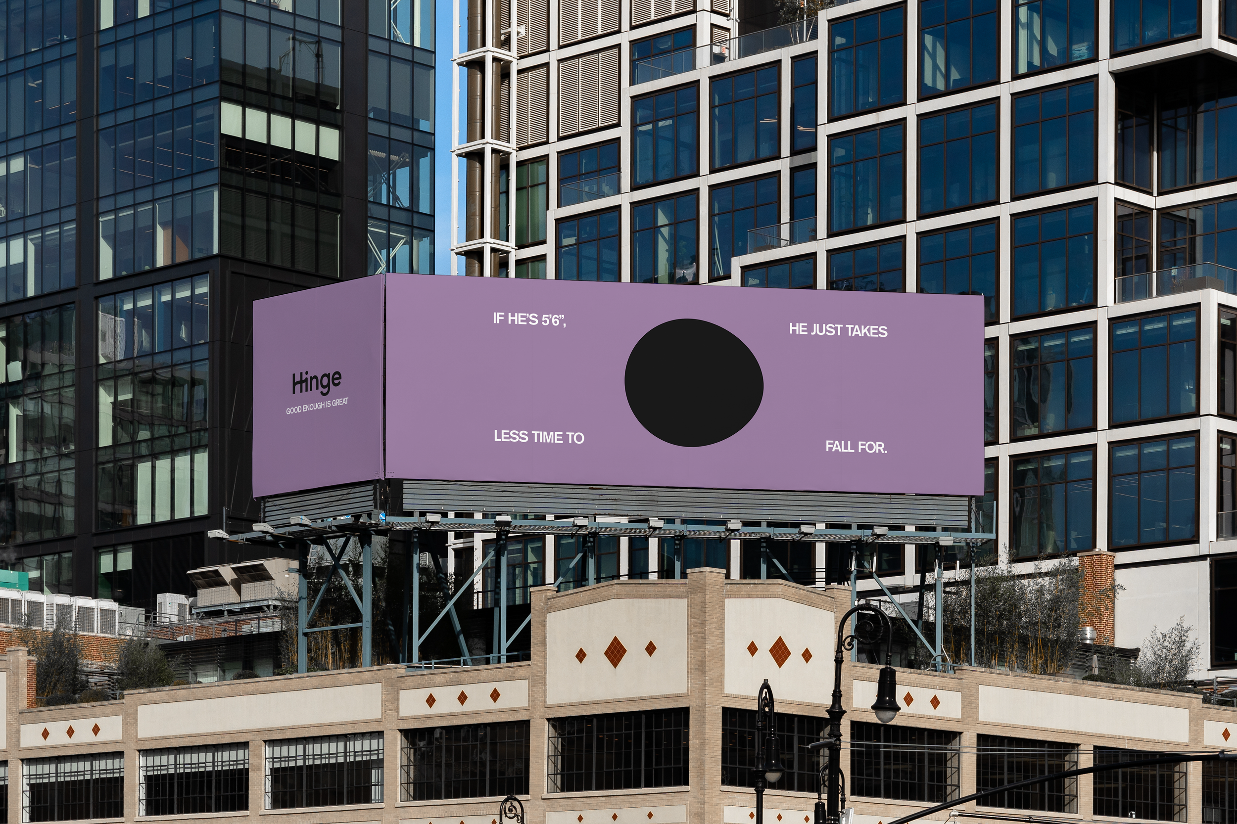The unsettling, almost perfect circles appear on billboards with only the word “Hinge” in the weeks leading up to the campaign. Just like the beginning of a relationship, you won’t be able to see the whole picture until you’ve given it more time.