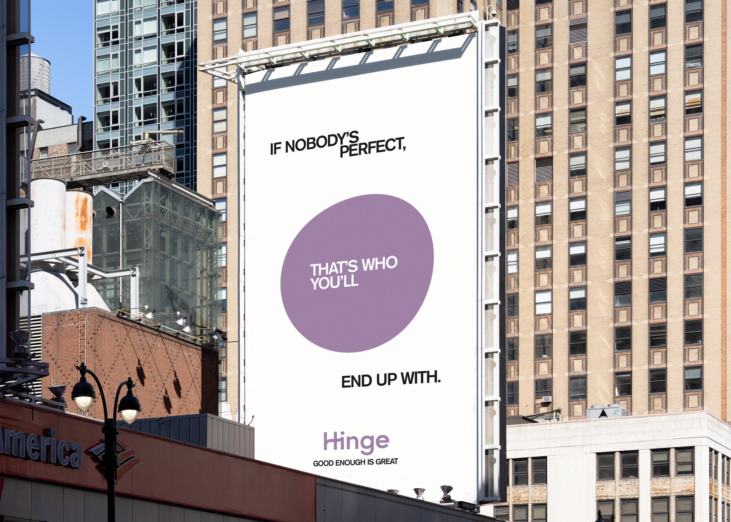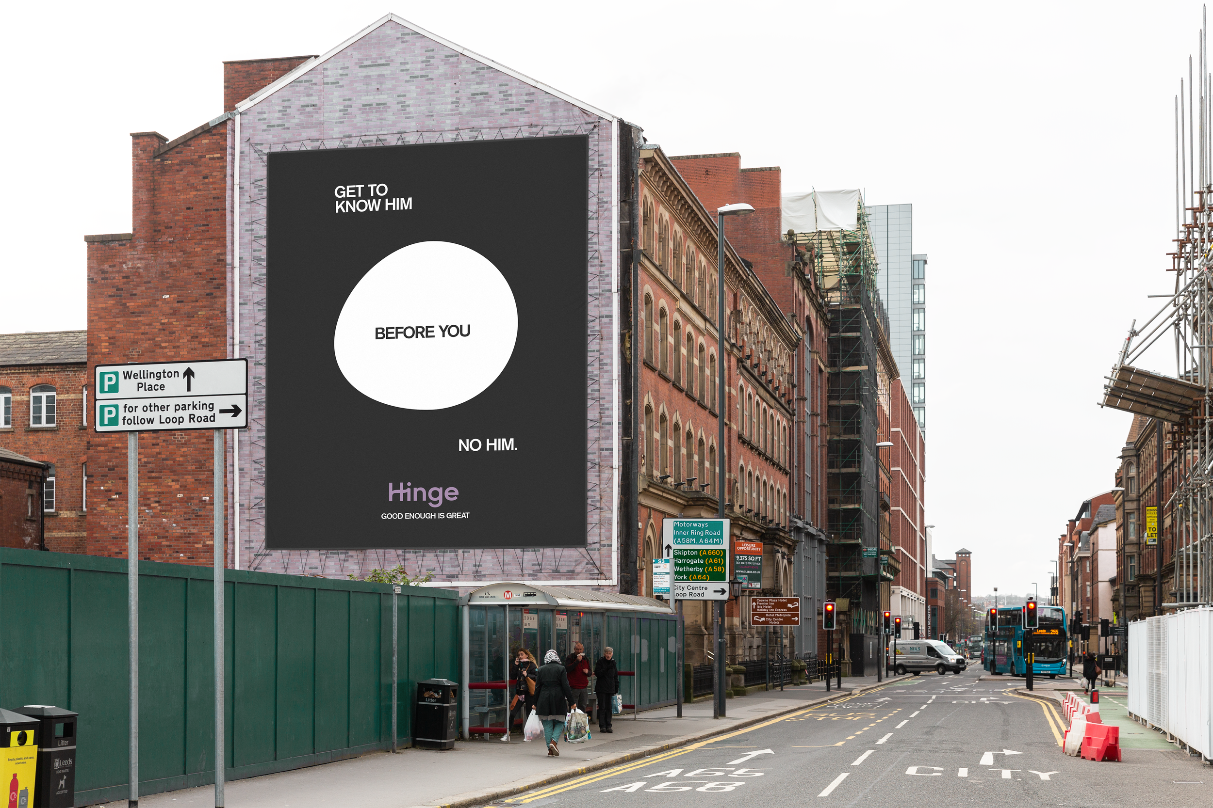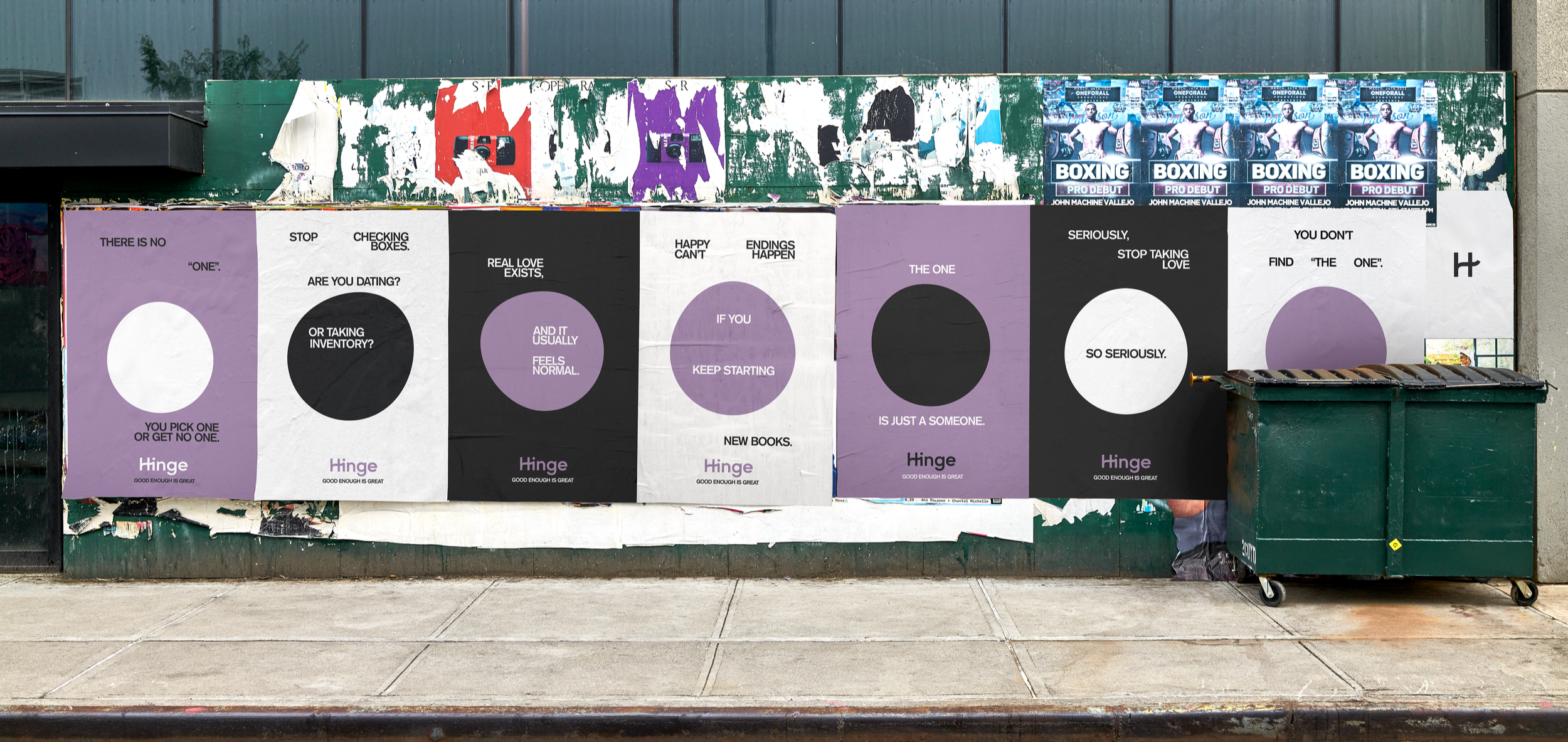 The unsettling, almost perfect circles appear on billboards with only the word “Hinge” in the weeks leading up to the campaign. Just like the beginning of a relationship, you won’t be able to see the whole picture until you’ve given it more time.